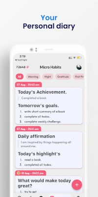 Embark on a transformative journey with Micro Habits, the ultimate app for self-improvement. Discover a comprehensive toolkit featuring habit tracking, goal management, to-do lists, routine tracking, mood monitoring, journaling, and accountability partnerships.